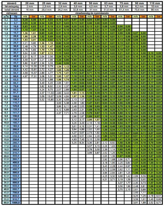 4.4.2 ábra. PE csövek nyomásveszteség táblázata